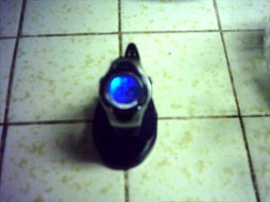 Shown at right in its display case on top of tonight’s leftovers, it keeps time, beeps and lights up (as shown below right) and times things once you figger out the directions. It’s apparently a knockoff of something made by Timex, but also something a 10 year old little bastard would prize until he finds out through trial and error that “water-resistant” doesn’t necessarily mean the same thing in Mandarin.
