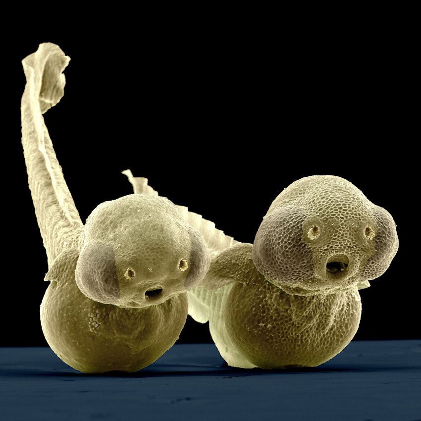“The zebrafish, or zebra danio, is a tropical fresh-water fish not only popular in aquariums around the world, but in research tanks as well. Danio rerio plays an important role in teaching us more about evolution. These two-day old larvae will turn into adult fish in three months. Scientists have found that zebrafish have the ability to regenerate fins, skins, the heart and the brain during the larval stages.”