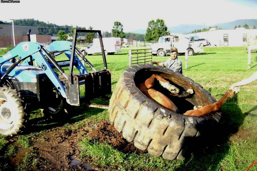 The horse, named Rowdy, fell into a sticky situation Monday when he found himself stuck in a large tire on a farm in Belington. The tire apparently holds water for the livestock, and when some local residents found Rowdy stuck, they were afraid he was going to drown. […] One of Rowdy’s owners who was on the scene, believes that Rowdy got trapped after an altercation with some of the other horses.