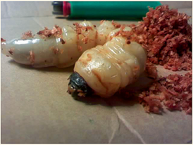 According to the source of that image, this happy guy was discovered after someone cut down a cherry tree, and one of the commenters believed it to be the larva of some type of long-horned beetle. Beetles come in all shapes and sizes, and the Xixuthrus Heros is one of the largest.