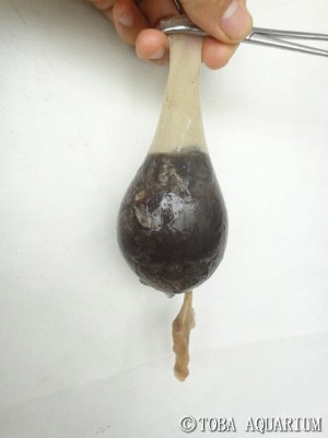 After that, I was a survey of solid was strained with a net, but this time in as long as it was confirmed by eye scales of fish are not included at all, there was still many just squid beak.
