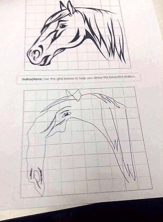 On the other hand, the sketch is awesome. Ignore the grid and mock the assignment. Realism is what cameras are for.