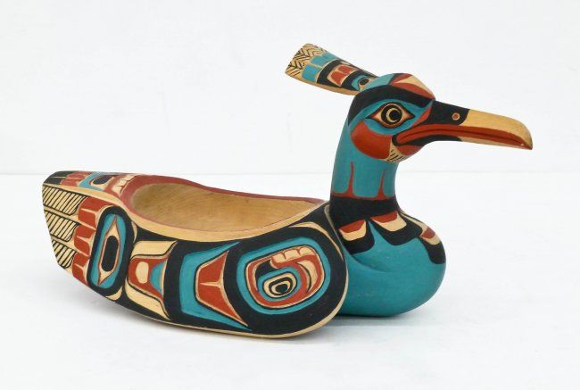 [Top image: 19th century loon-shaped Tsimshian seal grease bowl, found here.]