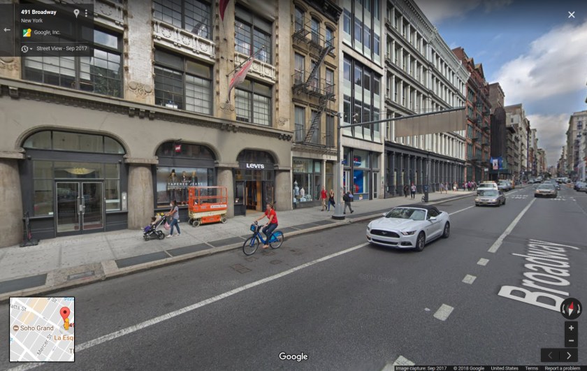 The photo includes visible addresses, so I decided to take a drive down Grand [via Google Maps] and look for 497, 499, 501 & 519 Broadway.