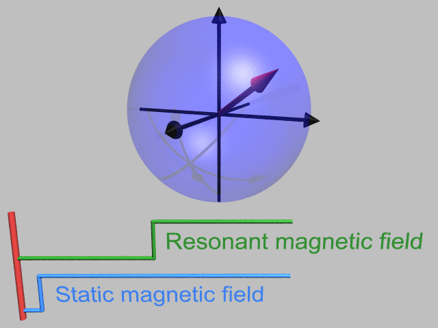 a) precession in the laboratory frame due to a static magnetic field followed by