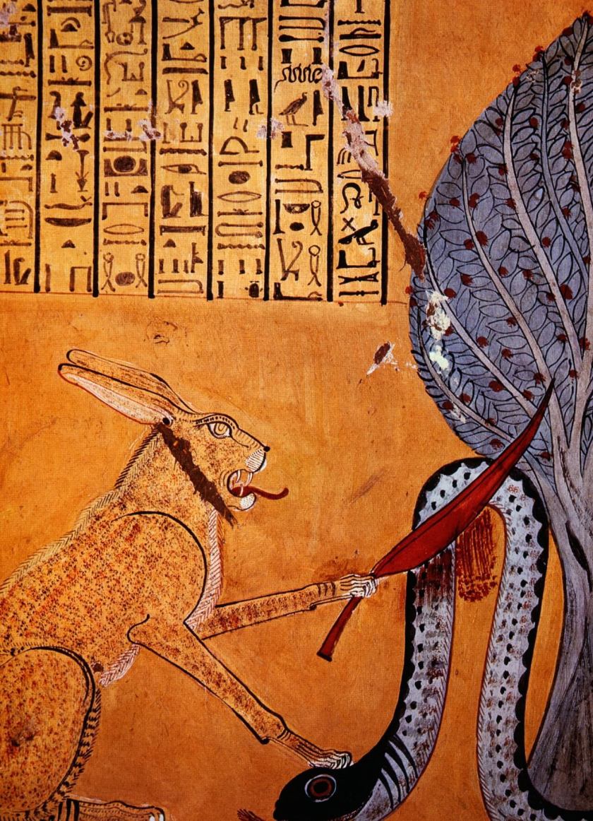 There was also a god named Apep or Apophis or something. He was a snake, the god of the underworld in charge of the forces of chaos and evil. The sun god had had enough of Apep‘s assholery and decided to take him out. Ra heard that Apep liked hanging out around a certain sacred sycamore tree.