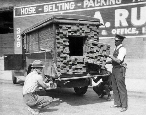 [Top image: Alcohol smuggling ca. 1926, via here.]