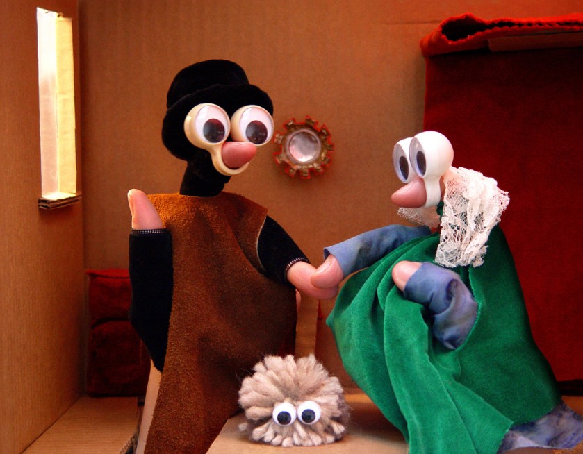 “In early 2004 I was invited to create a new work for an exhibition at an art foundation in Holland. The subject of the exhibition was humor. I decided to depart from the field of new-media experiments, while remaining in the ‘digital’ realm, by having some fun with the great Dutch Masters — Rembrandt, Vermeer, and Van Eyck. My partner Andrea made all of the costumes and spent a long time crouched underneath a cardboard box while I carefully positioned and photographed her fingers. It was a new experience for me when the show’s curator refused to exhibit the work he had commissioned, even though it was already listed in the catalogue. The explanation he provided was that the photos “weren’t funny”. About a week later I received an even more puzzling request to exhibit the project in a Taiwanese digital art festival.” -Golan Levin