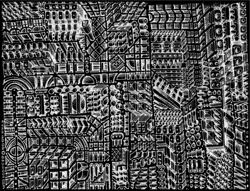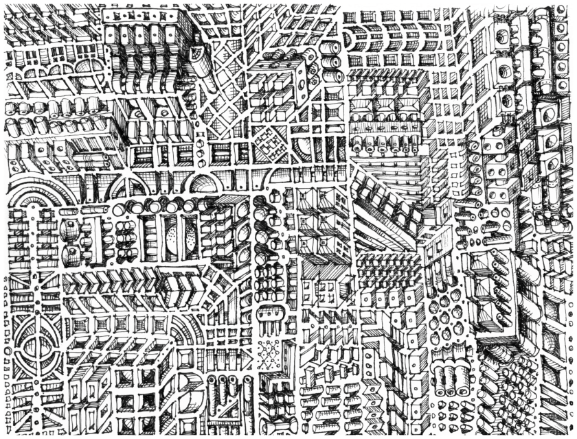 9AM daily. Pen on paper, 8-1/2 x 11, 6.25 square inches per day.
