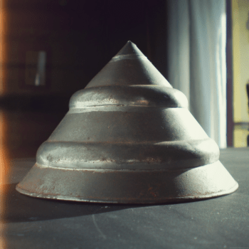 [Top image found here. From the comments: “It is a wheel balancer, used to place wheels or other objects on to ensure they are balanced to run correctly. For example, you can place lawnmower blades on it to ensure they run true.”
