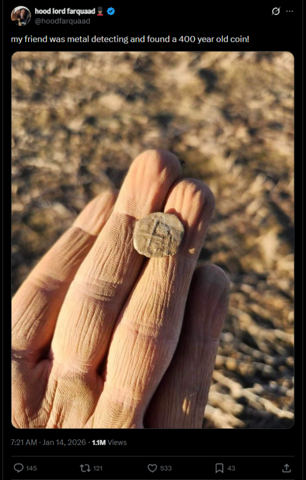 [Very old friend’s coin found here.]