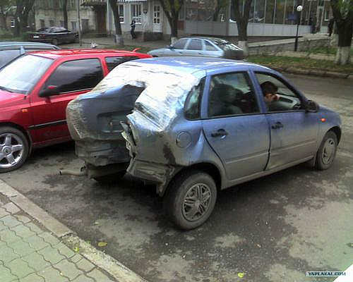 That’s a Russian Lada Kalina circa 2012, and if that’s not a bollard attack, then maybe a telephone pole lost its brakes, or someone’s boat was speeding or something. No way can a Lada travel that fast.