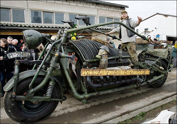 When you’ve got a genuine Russian tank engine lying around, how can you resist repurposing it? And really, tanks are so lumbering and oafish, and with the price of gas nowadays… something a little more sleek and maneuverable is obviously called for.