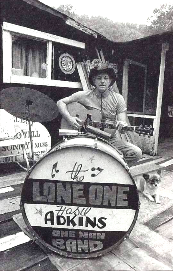“We salute one of the great outsiders in R&R: Hasil Adkins was born in Boone County, West Virginia on April 29, 1937, where he spent his entire life. He was the youngest of ten children of Wid Adkins, a coal miner, and Alice Adkins, raised in a tarpaper shack on property rented from a local coal company. Born at the time of the Great Depression, Adkins’ early life was stricken by poverty. His parents were unable to provide him shoes until he was four or five years old. Some reports say he attended school for a very brief time, as few as two days of first grade.