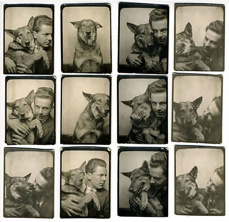 In the winter of 1943, a well-dressed man posed for several photos with his German Shepherd in a photo booth at New York City’s Grand Central Station.
