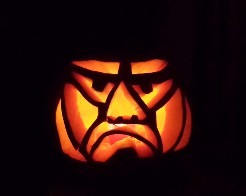 The missus butchered this year’s Grumpkin in record time, and not a single tricker treater showed up last night. On the plus side, we have about month’s worth of Reese’s and I know where they’re hidden.