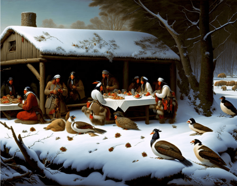 The Plymouth colonists were likely outnumbered more than two-to-one at the event by their Native American guests. Winslow’s account records “many of the Indians coming amongst us, and amongst the rest their greatest king Massasoit, with some ninety men.” Massasoit (who was actually named Ousemequin) was the sachem (leader) of the Pokanoket Wampanoag, a local Native American society that had begun dealings with the colonists earlier in 1621.