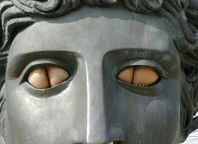 Cheeky sculpture by Seymore Butz? Looking through the rearview in a two-seater? Booty in the eye of the beholder? See bottoms? When the moon hits your eye? Buttinskis? Crackhead? Eigel Asses?
