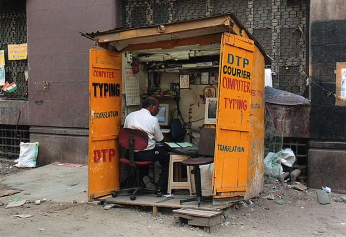 [Street office in Mumbai, India, ca. 2010 found here; same office in 2012 here.]