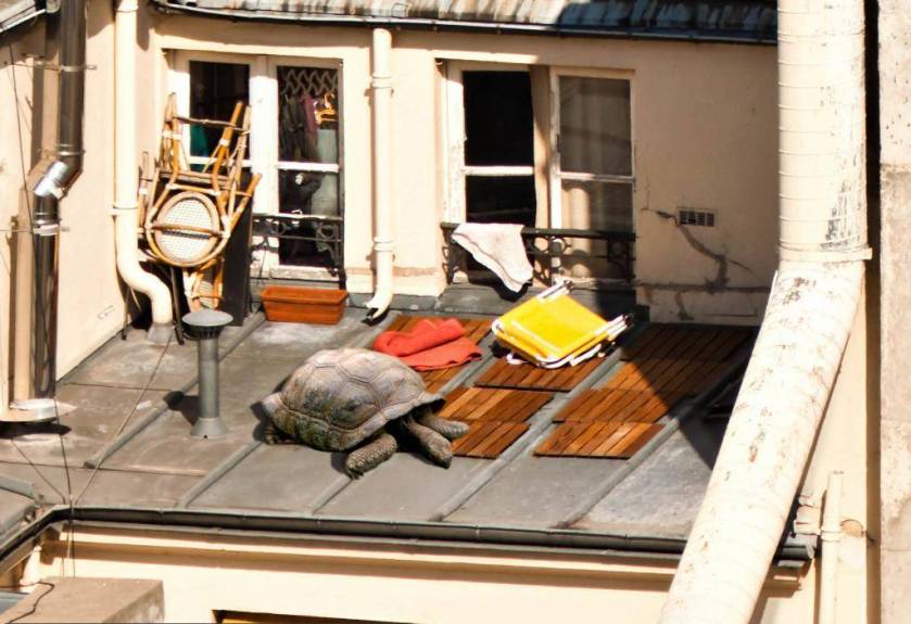 It’s likely the tortoise was photoshopped in as a prank/copyright by the professional zoomers since there is no barrier to keep it from falling off of the sheet metal roof, but I don’t care… the photo detail is still awesome. After all, look where we came from: