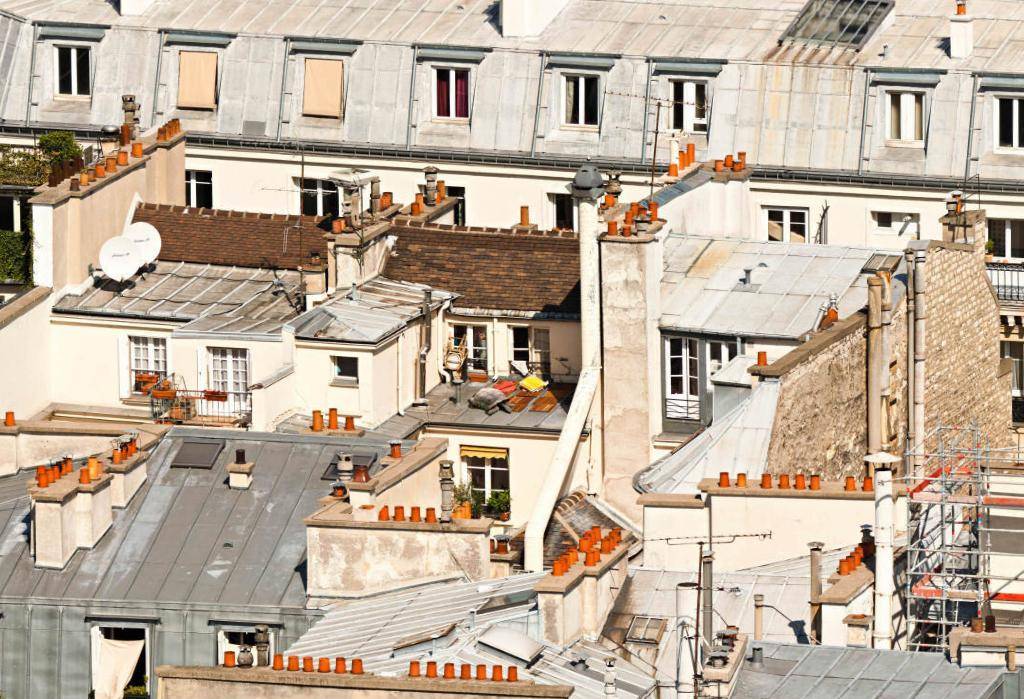 The orange dealies scattered around are clay chimney pots, vents for the flats below.