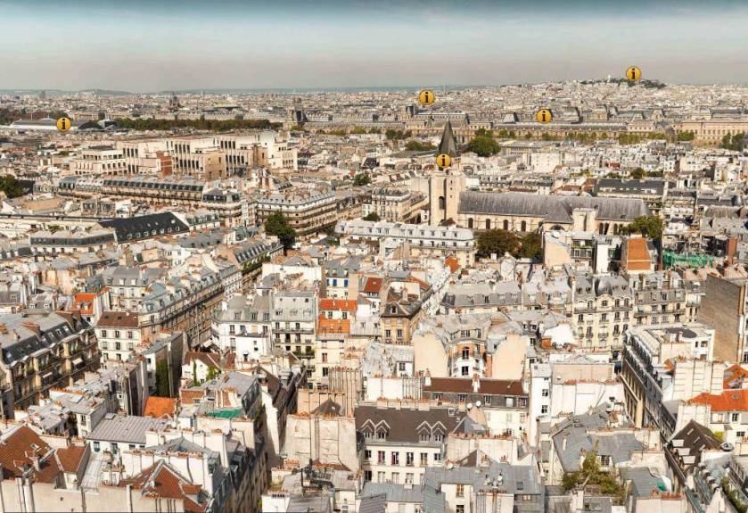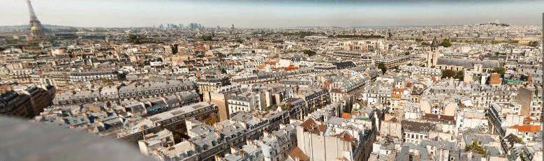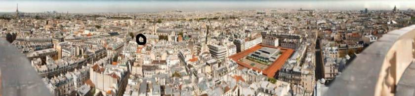 That’s a panoramic view of Paris above, the Eiffel Tower is on the horizon at far left. The black donut in middle left is where we’re going. I didn’t believe it at first, until I zoomed in. Below are screen shots from the same image.