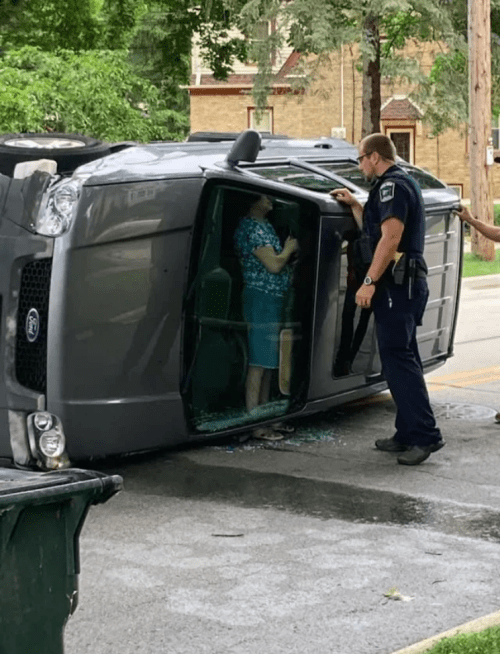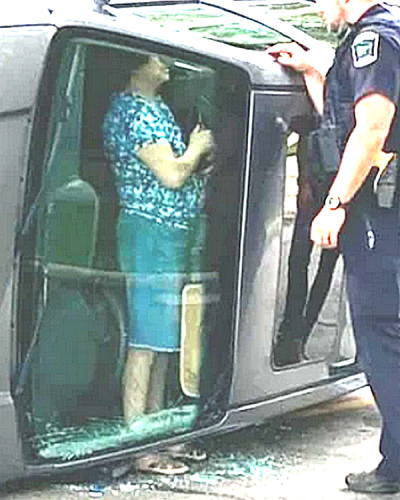 The motorbike accident happened 06 July 2022 on Camenite de Cachoeiras de Macacu, Rio de Janeiro, Brazil – he survived with no serious injuries.. Commenters on this video blame both the woman AND the cyclist; she for opening her car door without looking, and the cyclist for passing on the wrong side of the concrete truck.