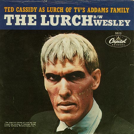 But there’s more to his story. Besides being a household word for rock n roll and gettin’ hot babes, the late Ted Cassidy played TWO parts in “The Addams Family” TV Series. Lurch was one of them… the other was “Thing.”