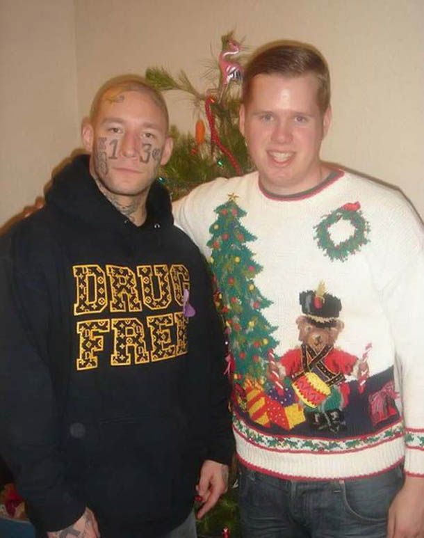 Out on bail and home for the holidays. And one of them is drug free, at least for a couple of hours.