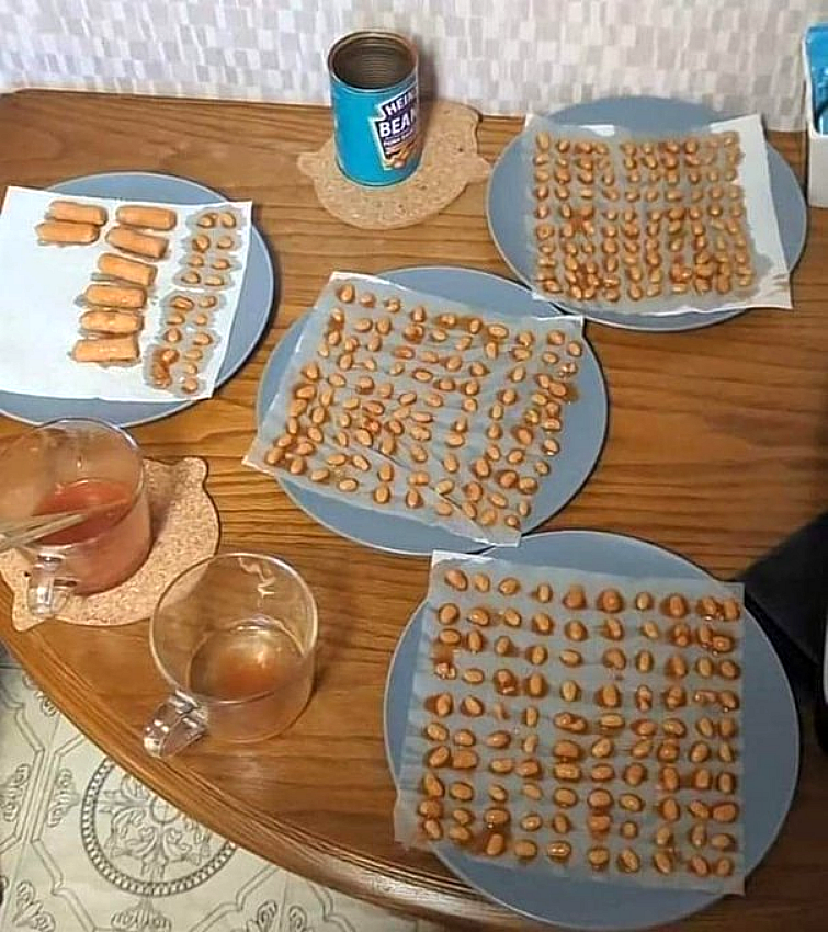According to Jim Strachan, there are 319 beans and eight sausages in a can of Heinz Beanz & Pork Sausages; however, Mr. Strachan is incorrect. There are 320 beans.