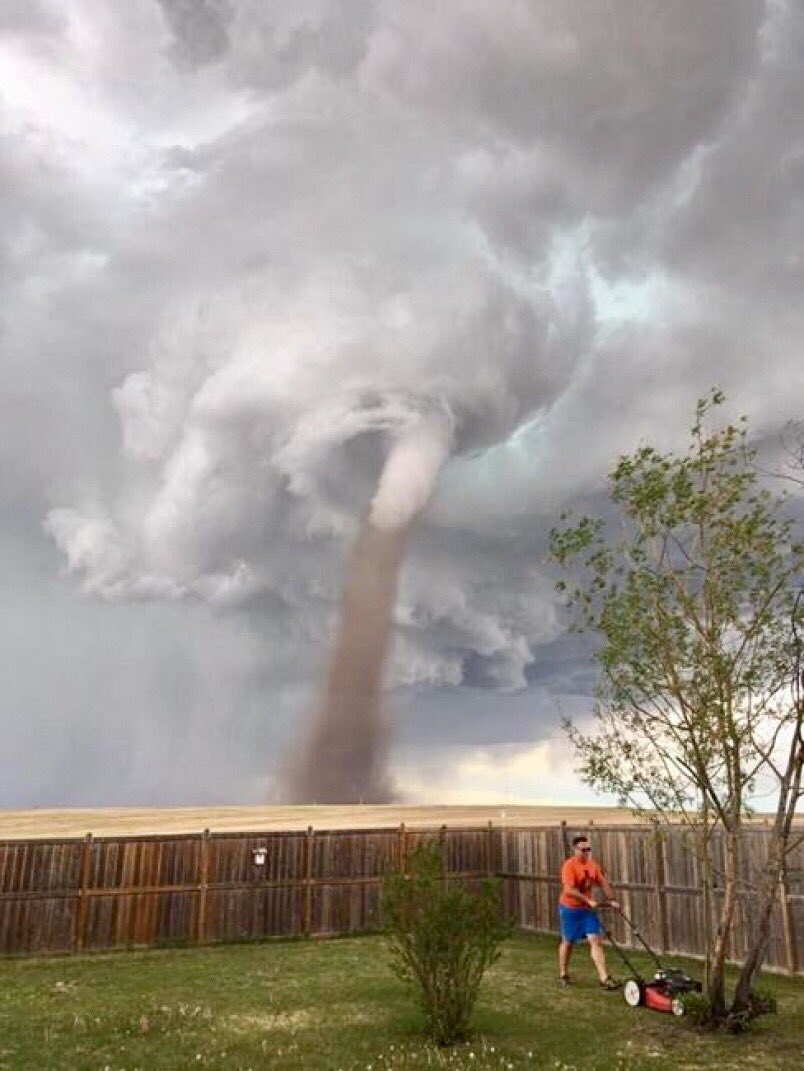 When I was a teenager I witnessed a “small” tornado that passed about a mile or so away from our house. Hail was raining down, sky was black with clear orange sky underneath, the funnel was a churning slow-moving mass of brown with no distinct edges. Next thing I recall is my dad grabbing me by the collar and throwing me into the basement where we hunkered down and listened to the static on the AM transistor radio.