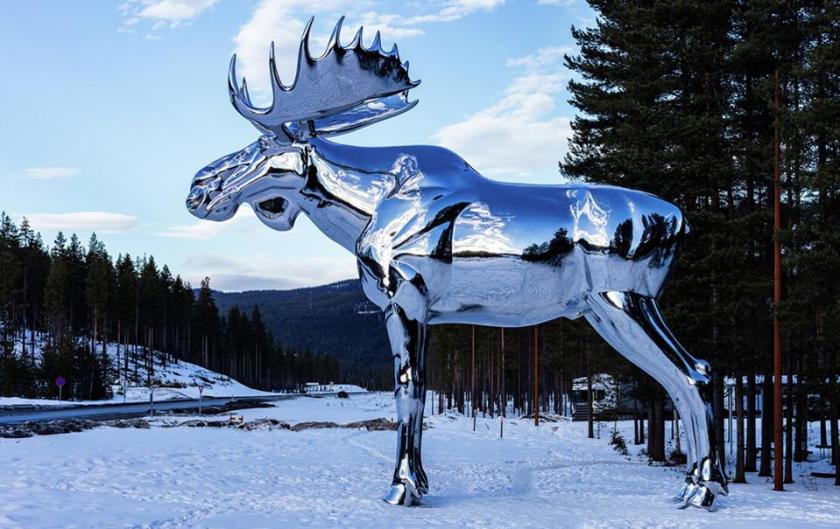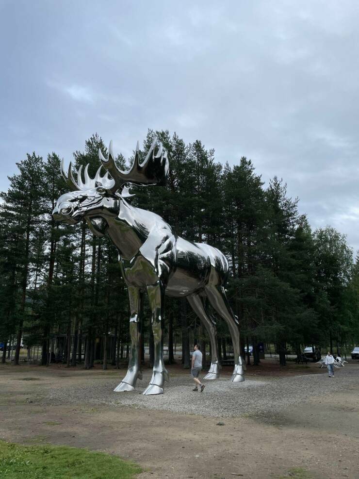 Mac the Moose, of Moose Jaw, Canada, was the world’s tallest moose sculpture at 32′-2″ until he was dethroned in 2015 by a Norwegian chrome moose (pictured above). He resides at a rest stop off the RV3 road in Stor-Elvdal, Norway, and stands 33′-1″ tall .