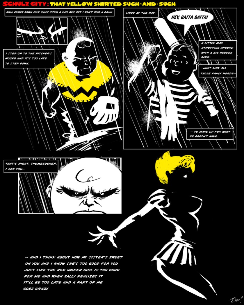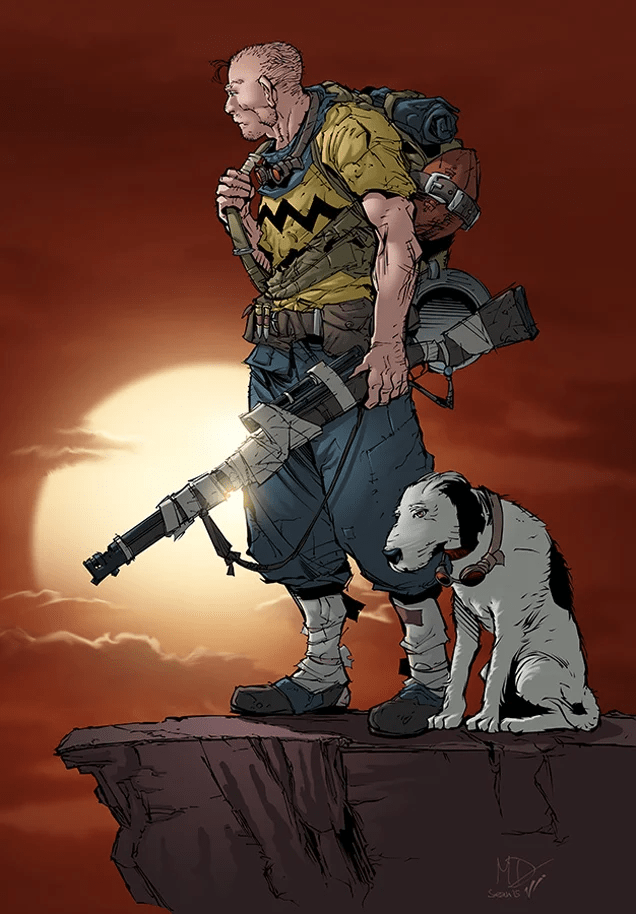 Charles looked over the barren, desolate plain as the sun slowly set. He knew he wasn’t going to get much sleep tonight. Too many foot prints. There was blood in the air. He just hoped Linus was having more luck at his end. Snoopy grumbled anxiously at his feet. He knew it was time to move on. He hoisted his worn and mangled pack higher on his back, squared his shoulders and took a deep breath.