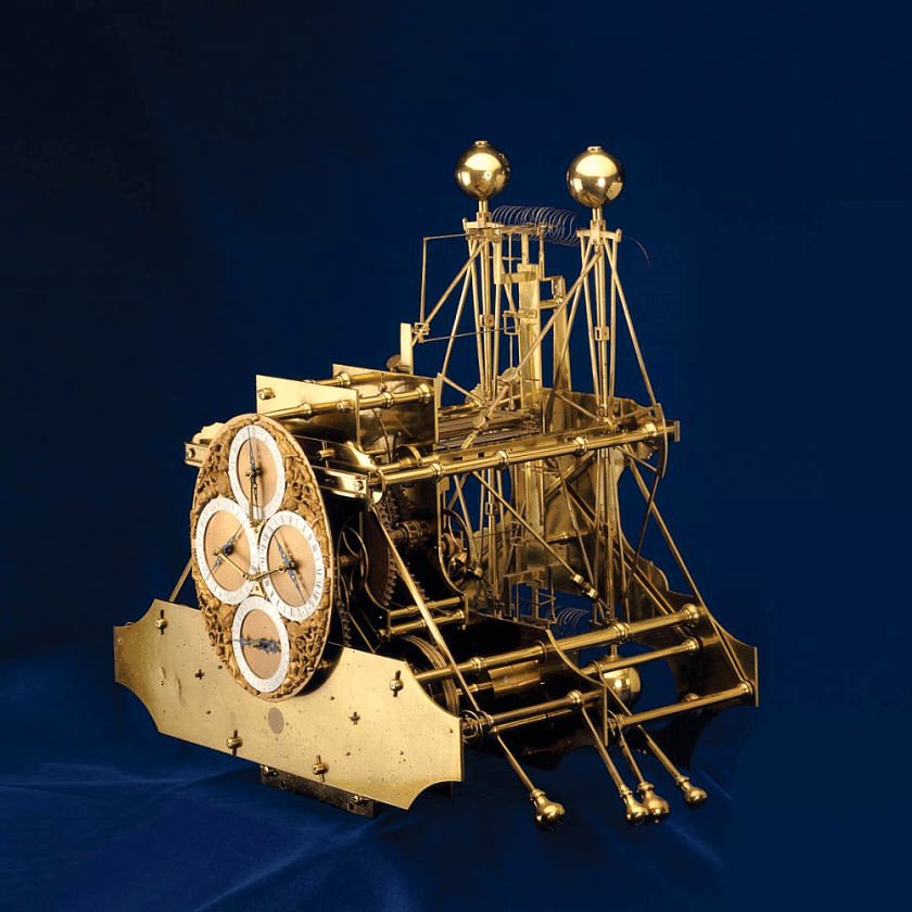 In 1714, the British government offered a longitude prize for a method of determining longitude at sea, with the awards ranging from £10,000 to £20,000 (£2 million to £4 million in 2019 terms) depending on accuracy. John Harrison, a Yorkshire carpenter, submitted a project in 1730, and in 1735 completed a clock based on a pair of counter-oscillating weighted beams connected by springs whose motion was not influenced by gravity or the motion of a ship. His first two sea timepieces H1 and H2 (completed in 1741) used this system, but he realized that they had a fundamental sensitivity to centrifugal force, which meant that they could never be accurate enough at sea. Construction of his third machine, designated H3, in 1759 included novel circular balances and the invention of the bi-metallic strip and caged roller bearings, inventions which are still widely used. However, H3’s circular balances still proved too inaccurate and he eventually abandoned the large machines.