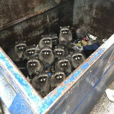 [Top image: Location of the 12 trash pandas is unknown, a Tineye search sources Reddit. h/t Rightymouse.]