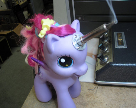 So you’re getting your daughter a Heathkit stereo preamp for Christmas/Hanukkah/Kwanzaa/Other, and you need some ideas for stocking stuffers. Strippers and dykes are always handy for working on electronics, but she’ll flip when she finds a My Little Pony Soldering Gun in her little Doc Martens that were hung by the chimney with care.