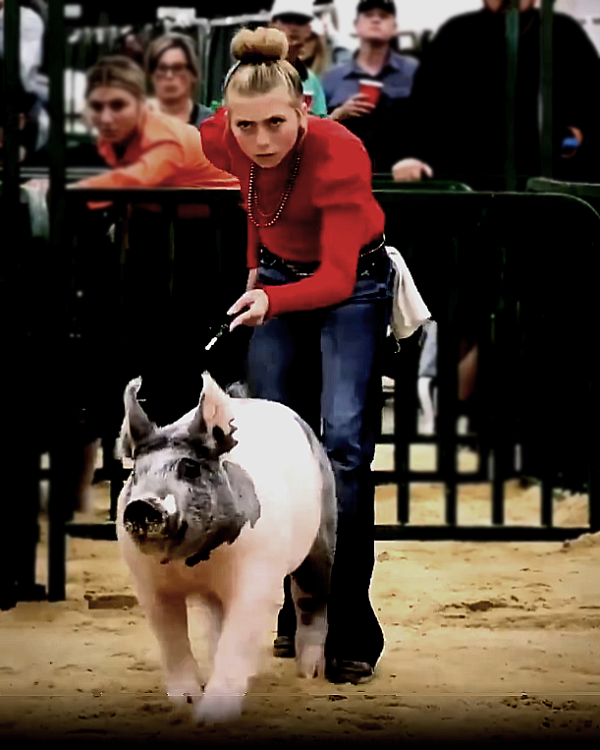 [Top image: Competitor in a pig showing. Story with video here.]