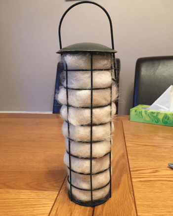 It’s a fur feeder. Fill it with Fido’s and Fluffy’s cast-off coats and give it to the birds to line their nests with. [Found here.]