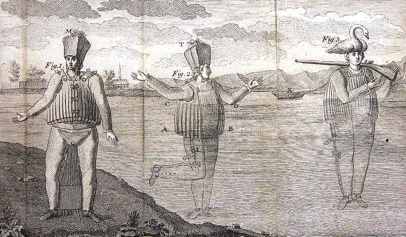 Father Jean-Baptiste de La Chapelle, born about 1710 and probably died in 1792 in Paris. Before a large audience, he jumped into the Seine, eating, drinking, snuffing, discharging a pistol and writing while floating on the surface. He tried again, three years later, this demonstration before Louis XV near the royal hunting lodge in the forest of Senart, but his attempt failed when the current swept him away so fast that the king could not identify what happened to him.