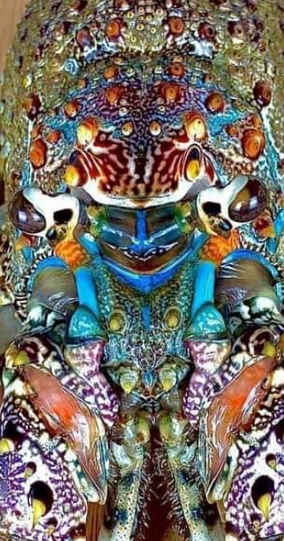 Cropped image of a Rainbow Lobster Panulirus ornatus.