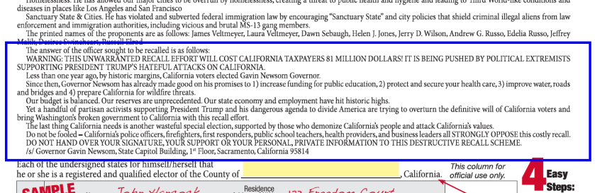 There’s a movement to recall California’s Governor Gavin Newsom (Nancy Pelosi’s nephew). Here’s his response as shown on the Petition: