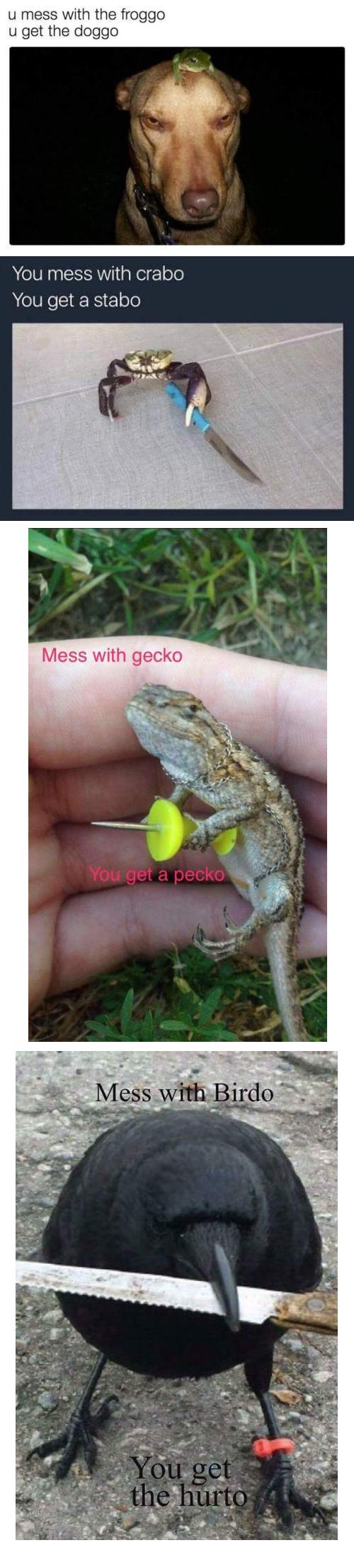 [1st found here, kitten shuffling clipped from here. 3rd .gif created/modified from AI meme morph found here.]
