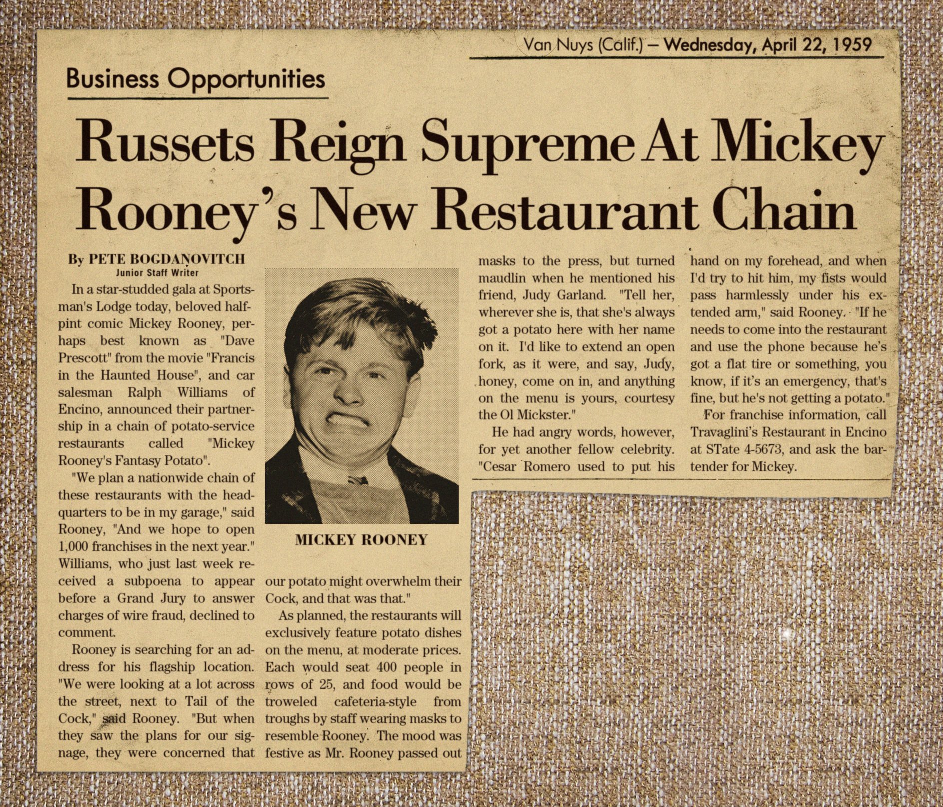 “This isn’t from 1960, I made it this morning while I drank my coffee. I posted it on my facebook page at about 10:45am, which was a couple of minutes after I finished making it. That’s my watermark, ‘Clarington Shpoo Imagification’, next to the french fries. It’s a joke, a parody.”
