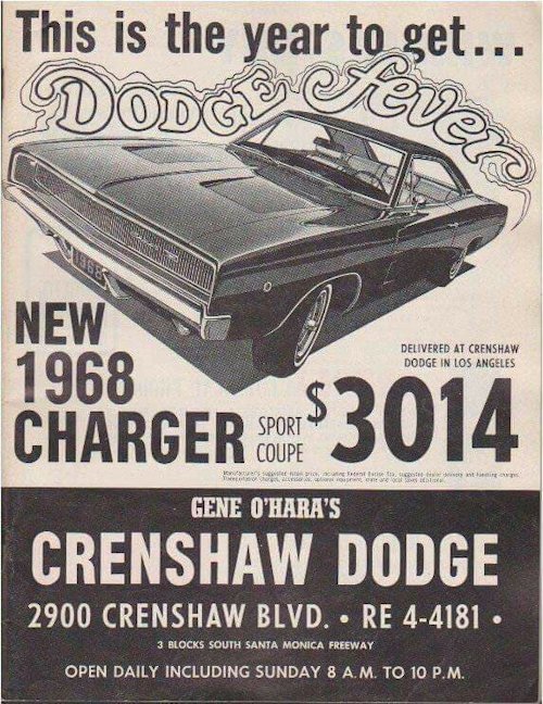 Crenshaw Dodge was open daily AND Sunday. If you squint, you can still see the ghost of the dealership.
