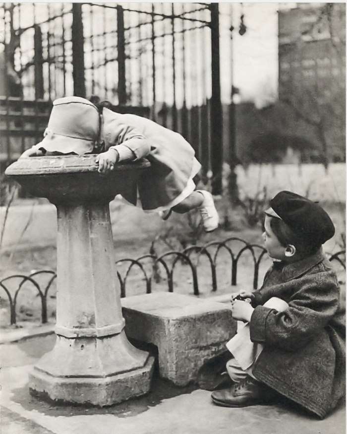 Todd Webb composed Sixth Avenue Between 43rd and 44th Streets, New York, 1948 from eight separate images. It depicts the west side of Sixth Avenue between West 43rd and 44th Streets, taken on the afternoon of March 24, 1948. Realizing he had to work fast to retain the same light, Webb plotted the shoot beforehand, lining up the edges of each photo with chalk marks on the sidewalk. The image was exhibited at the 1958 Brussels Worlds Fair, and he became internationally recognized as the “historian with a camera.”