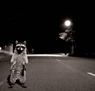 Middle of the night. Tired. You just passed through the woods from Gramma’s house, and crossed over the river. You see him in your headlights. He’s there, standing in the middle of the road. He dares you to hit him, knowing that your wife and kids are in the car, not quite asleep. You slowly brake to a stop, wondering what to do next. Defiance charges the air with electrical impulses unseen in the damp humid darkness, felt only by the hairs on your unshaven back. You can’t back down, yet you recoil after coiling. That haunting apparition…