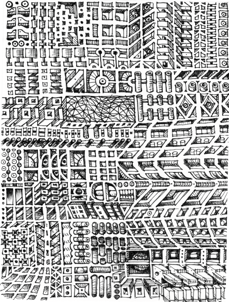 9am daily. Pen on paper, 8-1/2 x 11, approx. 2 square inches per each 30 minute teleconference.