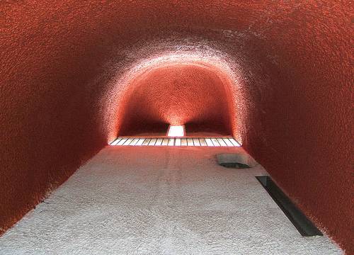 [Interior view of the tower of Le Corbusier’s Notre Dame du Haut chapel here.]