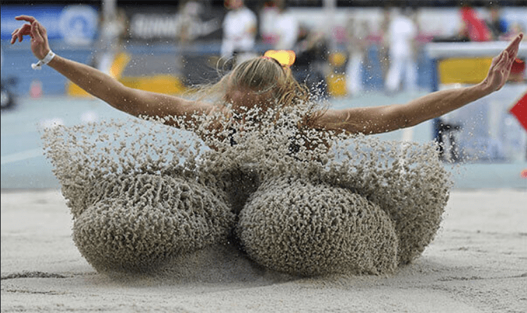 Luisa Bodem competes during the women’s long jump event at the German indoor athletics in Leipzig, Germany, Feb. 19, 2017.