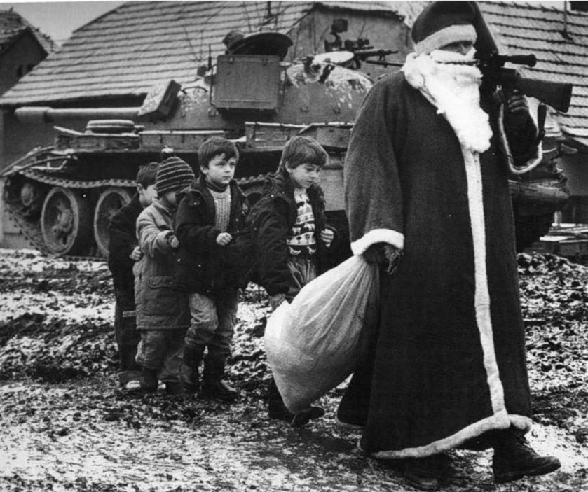 A 2013 discussion on Reddit includes analyses of this and other photos found in this collection, and suggests that the Santa photo may have been Yugoslav staged propaganda.